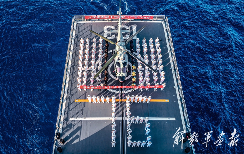 远在亚丁湾海域执行护航任务的第47批护航编队举行宣誓仪式,庆祝人民海军成立76周年,激励官兵逐梦深蓝、建功大洋。(摄影/任 科)