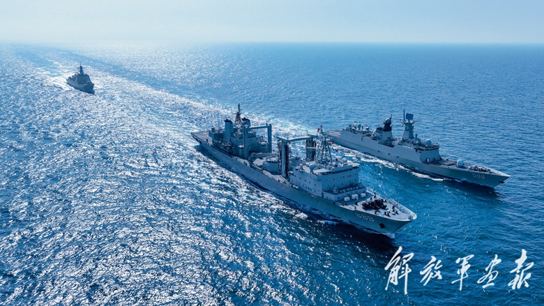 舰艇机动途中开展补给训练。(摄影/连海清)