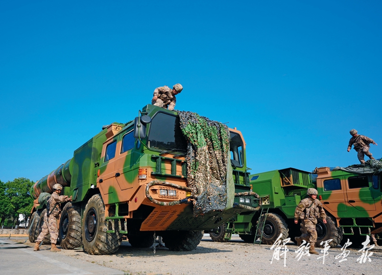 海军岸导部队官兵撤收伪装、展开装备。(摄影/闫小波)