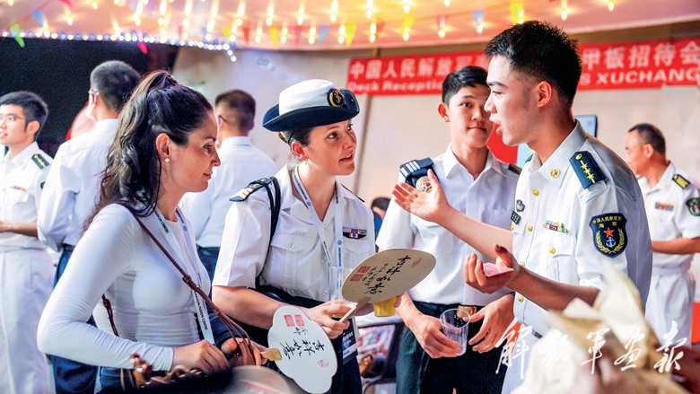5月,在“中新合作-2025”海上联合演习期间,中方举行甲板招待会。(摄影/姜海涛)