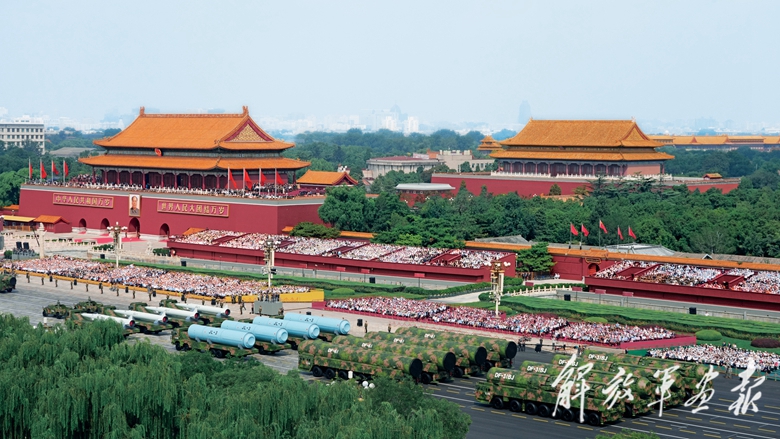 9月3日,国产现役主战装备和战略重器在天安门前光荣接受检阅,展示坚决捍卫国家主权安全发展利益、坚定维护世界和平的钢铁意志和强大实力。 (摄影/记者 宋 雯)