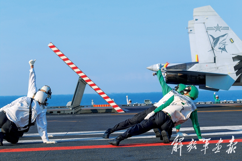 山东舰起降保障中队官兵将青春和热血倾注在危险的飞行甲板上,精准保障舰载机一次次安全起降,实现战机出动率成倍增长,不断创造中国航母战斗力指标新纪录。 (摄影/扈秀帅)