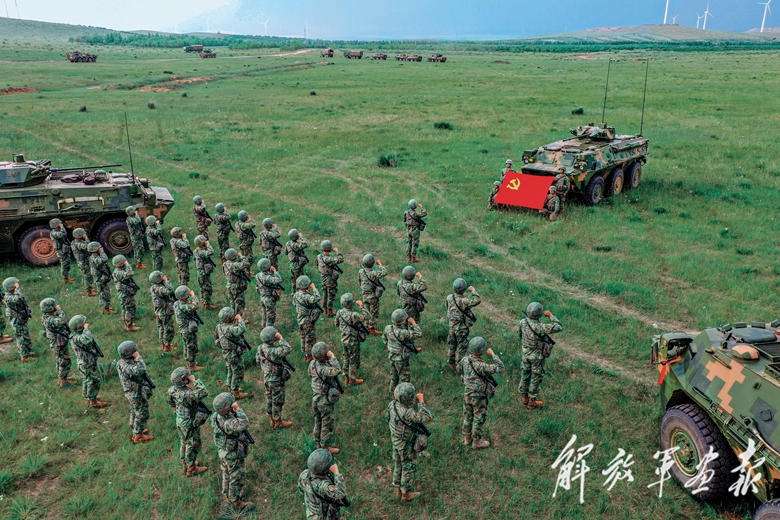 7月1日,陆军某部组织党员重温入党誓词。(摄影/谢沅鑫)