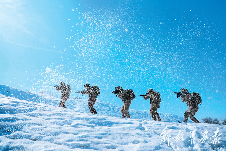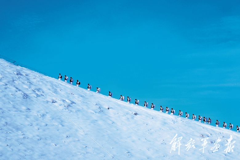寒冬腊月,新疆军区某边防连开展野外拉练。(摄影/王 越)