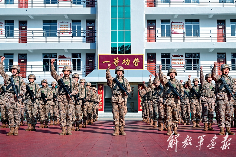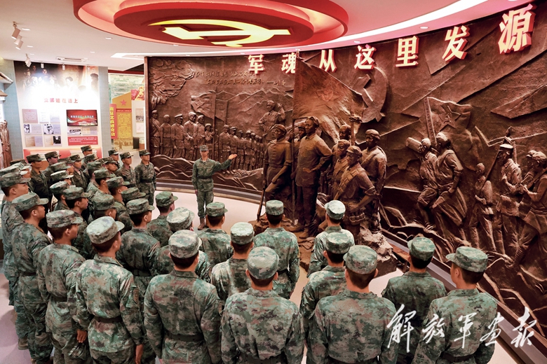 陆军某旅组织新兵学习党史军史,激发强军报国的壮志豪情。(摄影/张润博)