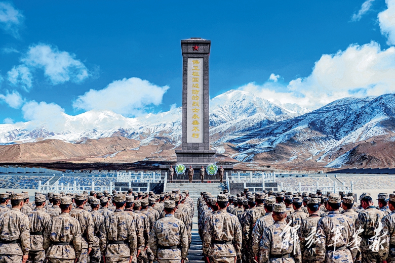 清明节前夕,陆军某团官兵走进康西瓦烈士陵园缅怀英烈。(摄影/孙卓凡)