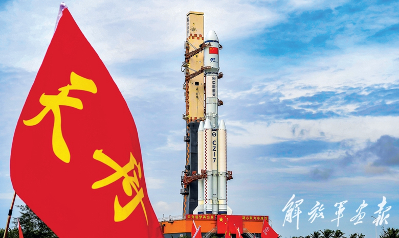 7月15日,天舟九号货运飞船发射任务取得圆满成功。图为天舟九号货运飞船与长征七号遥十运载火箭组合体垂直转运中。(摄影/新华社记者 杨冠宇)