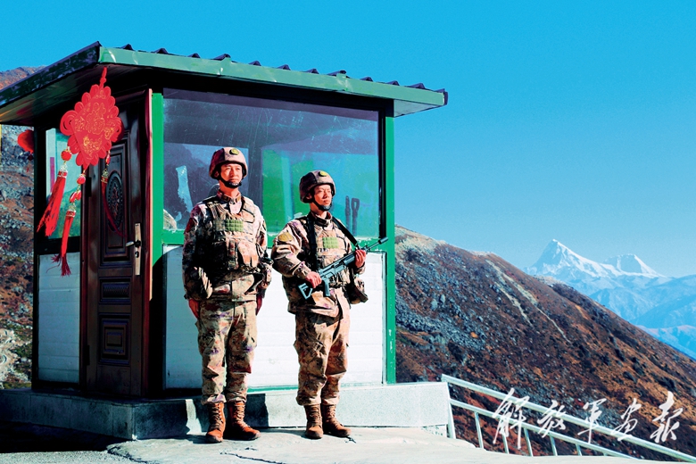 春节期间,西藏军区某边防团乃堆拉哨所战士坚守战位,守护祖国安宁。(摄影/赵乐源)