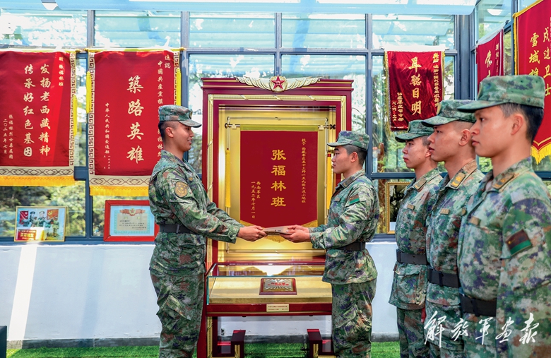 陆军第83集团军某旅“红一连”开展党史学习教育课,指导员为官兵讲述连队传家宝“红菜盘”背后的故事。(摄影/乔子丰)