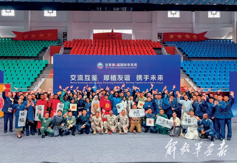11月,由空军工程大学承办的空军第6届国际学员周在西安举行。来自10余个国家的33名学员与12所中方军事院校的学员混合编组,开展学习训练、研讨交流和文化互动等活动。图为中外军校学员合影留念。(摄影/陈 明)