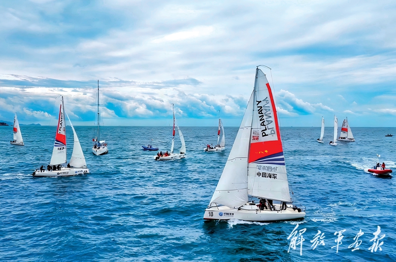 9月,海军潜艇学院在山东青岛举办“未来·海军国际学员领导力淬锋营”活动。图为各国学员在青岛奥帆中心附近海域参加国际帆船邀请赛。(摄影/马思东)
