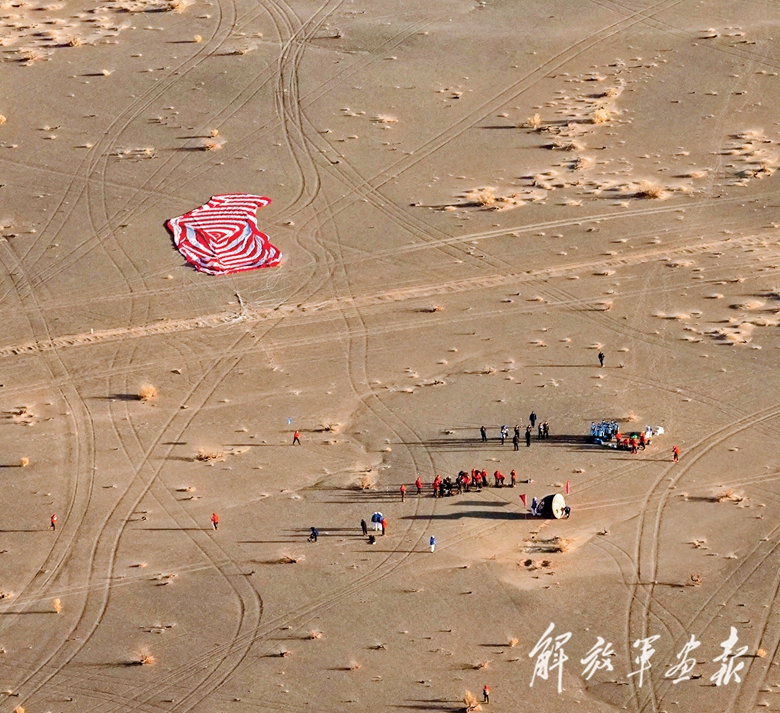 11月14日,载着神舟二十号航天员乘组的神舟二十一号载人飞船返回舱在东风着陆场成功着陆。(摄影/新华社记者 李明刚)