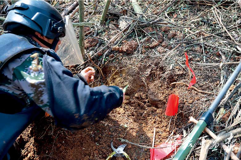 2017年11月27日,中越边境广西段新一轮扫雷行动启动。担负此次扫雷任务的南部战区陆军某边防旅兵分东西两线,同步实施扫雷行动。截至2月下旬,已完成深度排雷作业近20万平方米,深排、封围雷场20多个,搜排出地雷100多枚。