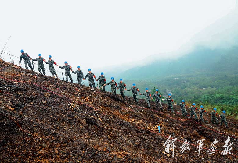 雷场搜排完毕,排出的地雷引爆后,扫雷官兵要向当地政府和老百姓移交雷场。移交雷场前,官兵们要当着老百姓的面,手牵手在雷场上走几个来回。