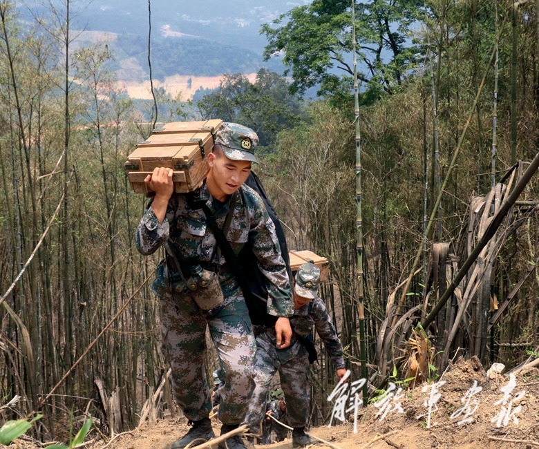 马嘿雷场山高坡陡、荆棘密布,来回要走6公里山路,战士们背着爆破筒一步一步往山上挪。一个弹药箱近30公斤重,每次杜富国都要争着多扛。他的肩膀被背带勒出一道道血印,脚底也磨出了血泡。
