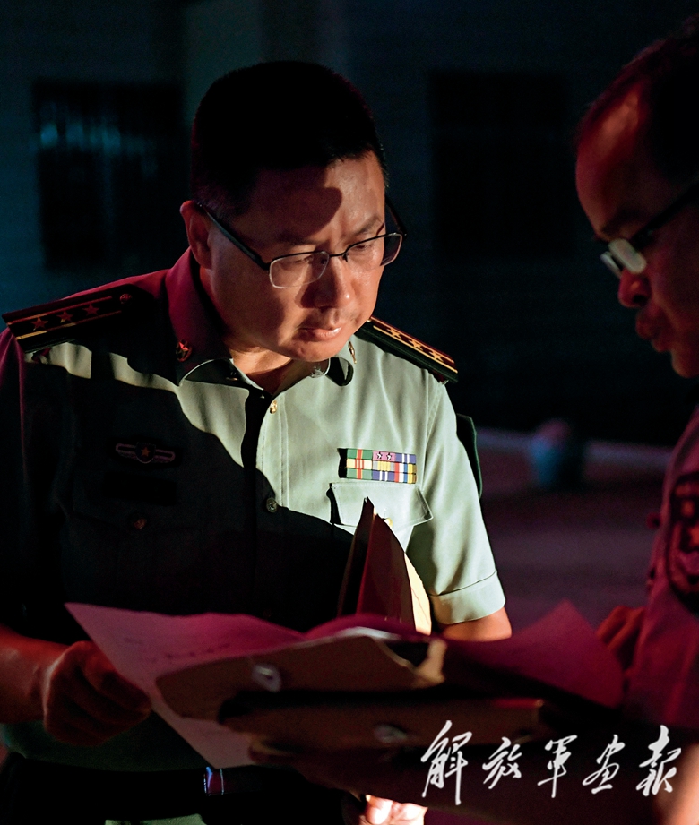在返程途中,陈云还不忘查看几处国防动员宣传栏及大型LED屏的宣传效果。回到人武部时,已是晚上9:10。陈云顾不上吃晚饭,又忙着和同事查看预征青年的档案……