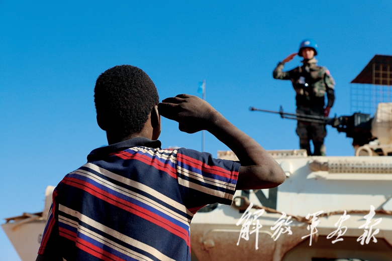 当地时间2018年11月,当地少年萨罗拉智的手受伤,得到我维和部队的及时救治。12月10日,萨罗拉智看到官兵正在执行任务,兴奋地