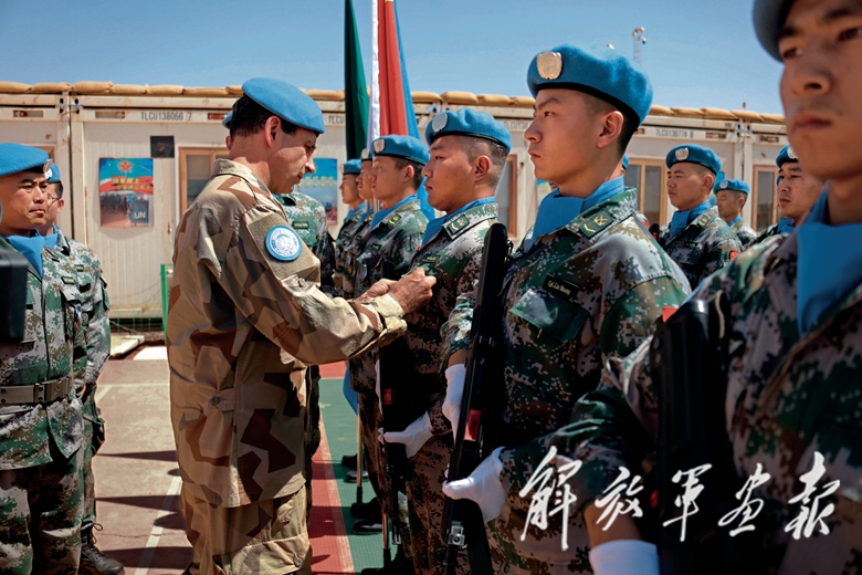 当地时间2019年3月7日,中国第6批赴马里维和部队395名维和官兵全部被授予联合国和平荣誉勋章。