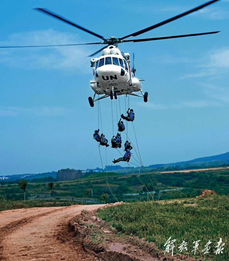 “中国蓝盔”,为世界和平出征。2013年以来,在原有工兵、医疗、运输分队的基础上,中国军队向联合国在马里、南苏丹、苏丹等国的维和行动中派出警卫分队、步兵营、直升机分队。目前,中国军队有2200多名维和官兵在7个维和任务区以及联合国总部执行维和任务。中国维和部队实现了力量构成从单一军种为主向多军兵种拓展、任务类型从支援保障向综合多能转型、行动目标从制止武装冲突向建设持久和平延伸,成为联合国维和行动的关键力量。在庆祝中华人民共和国成立70周年阅兵中,维和部队方队首次亮相受阅。从维和战场走来的官兵,头戴蓝色贝雷帽、身着战斗迷彩服,向全世界展示了中国维和军人的风采。