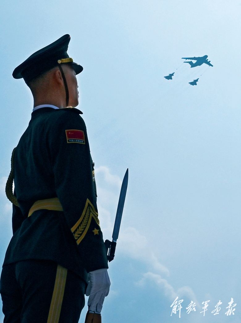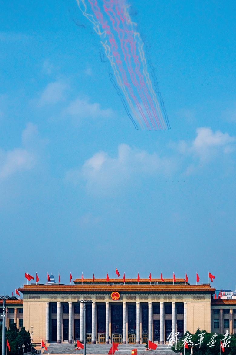 舰载机梯队飞临天安门广场上空。(摄影/新华社记者 王 晔)