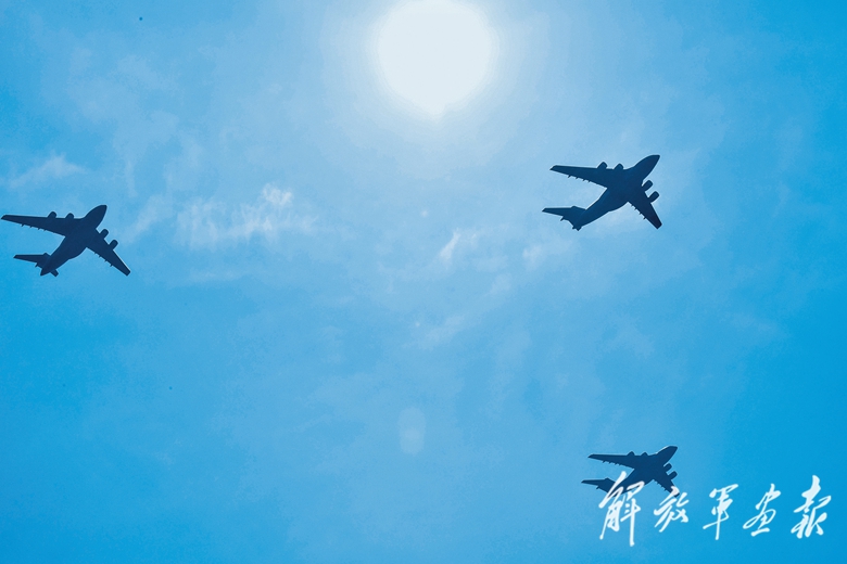 运输机梯队由3架运-20A、3架运-20B分别组成两个楔形编队,以战斗姿态飞过天安门广场上空。运-20系列运输机是国产新一代大型运输机,具有航程远、载重大、飞行速度快、巡航高度高、低速性能佳等特点,可以在复杂气象条件下执行长距离空中运输任务。如今,该系列运输机已成为我军全天候执行快速机动部署、大规模战略投送、非战争军事行动等多样化任务的主战力量。受阅的6架运输机来自空军航空兵某部。