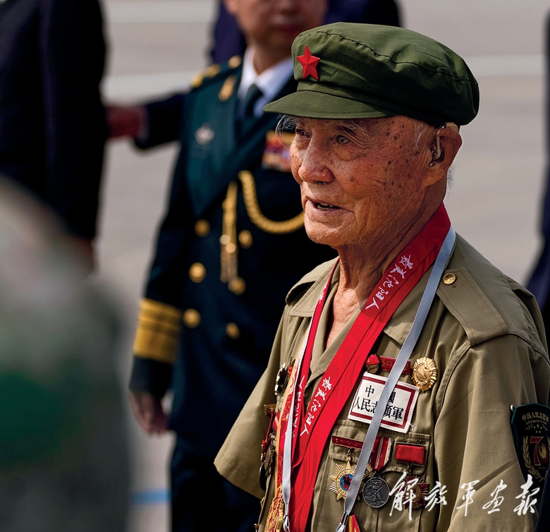抗美援朝老战士参加第十二批在韩中国人民志愿军烈士遗骸迎回仪式。(摄影/韩金宝)