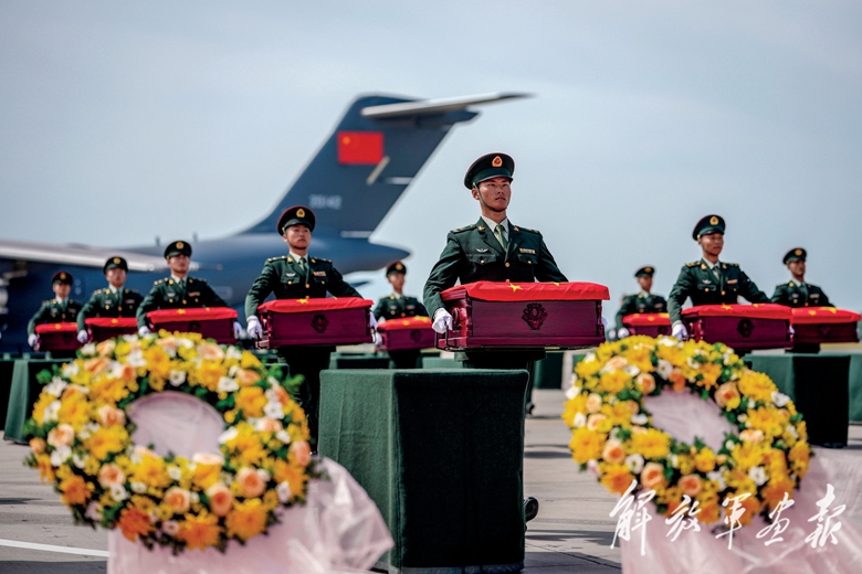12日上午,一架载运30位在韩中国人民志愿军烈士遗骸及267件遗物的空军运-20大型运输机进入中国领空,使用“跨江50”呼号,与4架使用“凯旋”呼号的歼-20战机,在蓝天之上进行了一场深情对话——