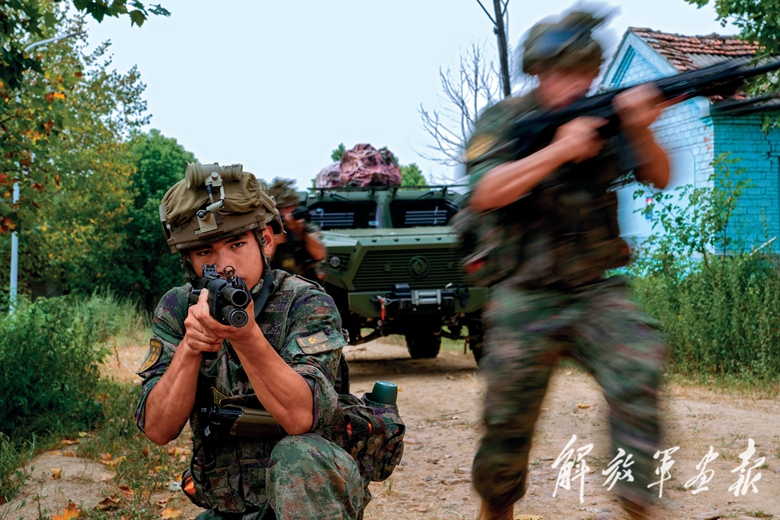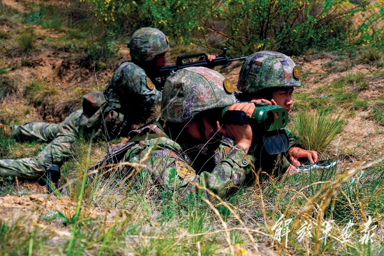 陆军第81集团军某旅三营九连小队长亓飞,带领小队在山岭间与“敌”斗智斗勇,圆满完成任务。