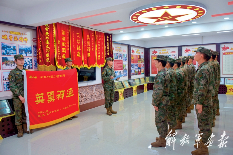 连队荣誉室珍藏的“英勇神速” 战旗。