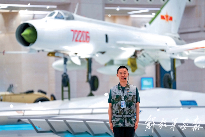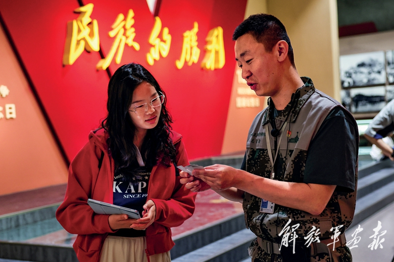 2022年底,得知军博再启志愿者招募,陈涛毫不犹豫地报了名。经过简历初筛、面试甄选、培训考核以及现场试讲,陈涛终于在翌年四月成为一名军博的讲解志愿者。