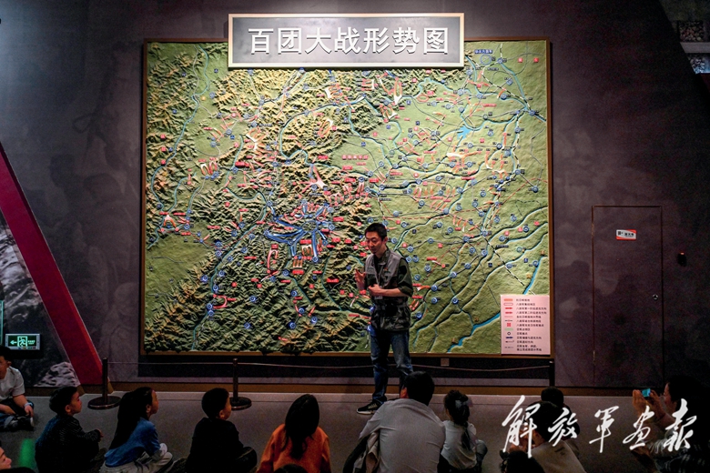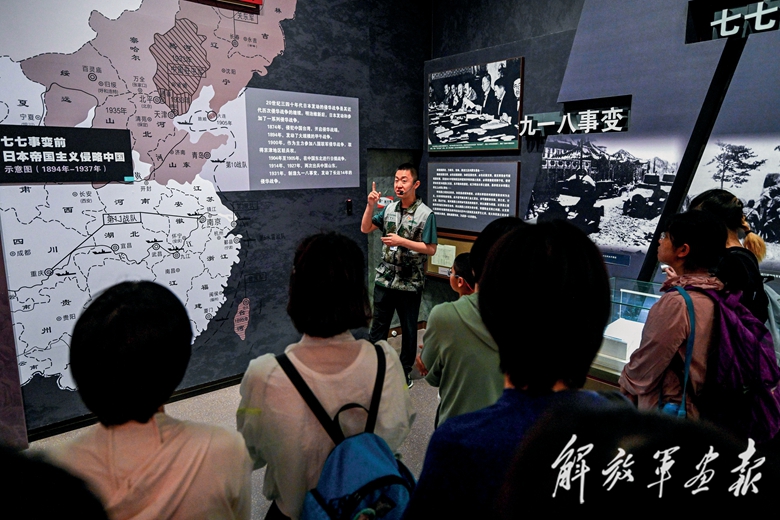 志愿者陈涛在军博为参观者讲解抗战历史。