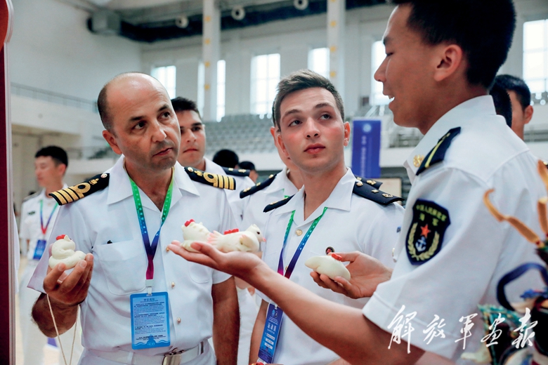 各国学员在海军潜艇学院文化俱乐部体验中国传统文化。