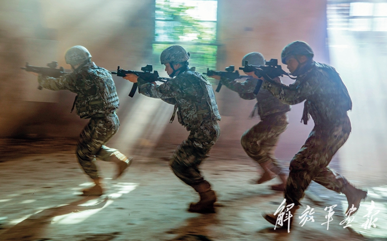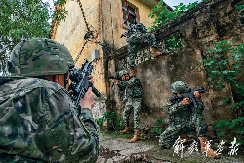 “4名‘暴恐分子’藏匿于西北方向废旧居民楼,快速追击!”一阵急促的警报声传来,武警广西总队南宁支队官兵迅速携装登车,向目标地疾驰。