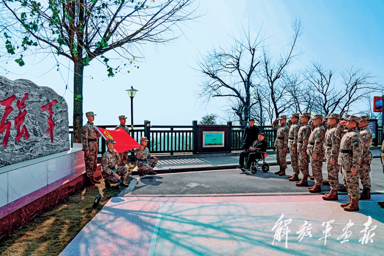 南部战区空军某旅雷达站老连长邓传友和老指导员李平坤回到军营忆战史、讲传统、话强军,鼓励官兵赓续好传统、传承好作风,为强军事业做出新的更大贡献。图为在两位老兵的见证下,雷达站党员重温入党誓词。(摄影/李彦晓)