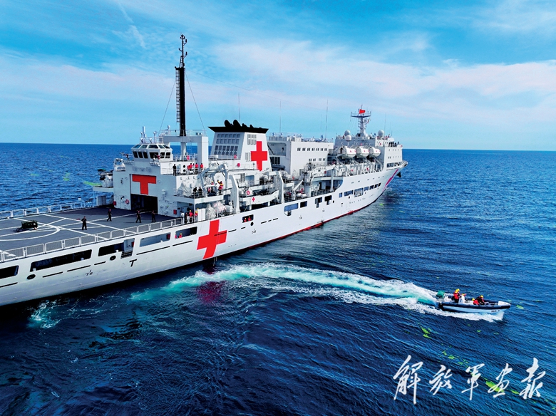 “吉祥方舟”号医院船开展海上卫勤训练。(摄影/马兴财)