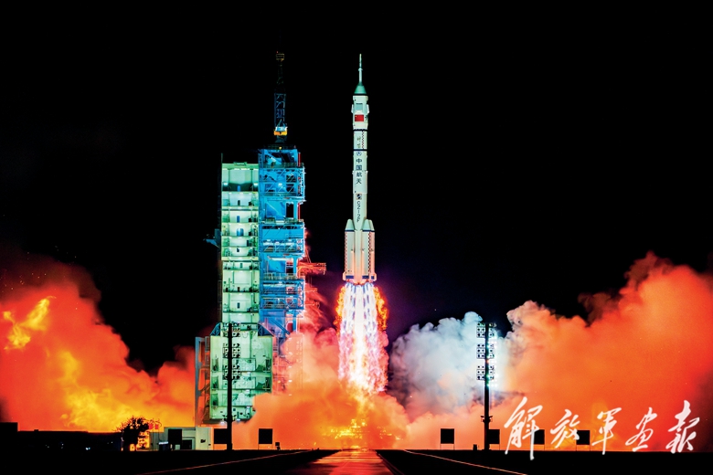 4月24日17时17分,搭载神舟二十号载人飞船的长征二号F遥二十运载火箭在酒泉卫星发射中心点火发射。(摄影/记者 刘 丹)