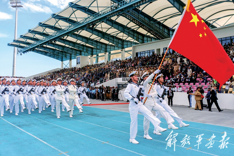 7月6日,中国人民解放军驻吉布提保障基地分队参加科摩罗独立50周年阅兵活动。(摄影/王宗洋)