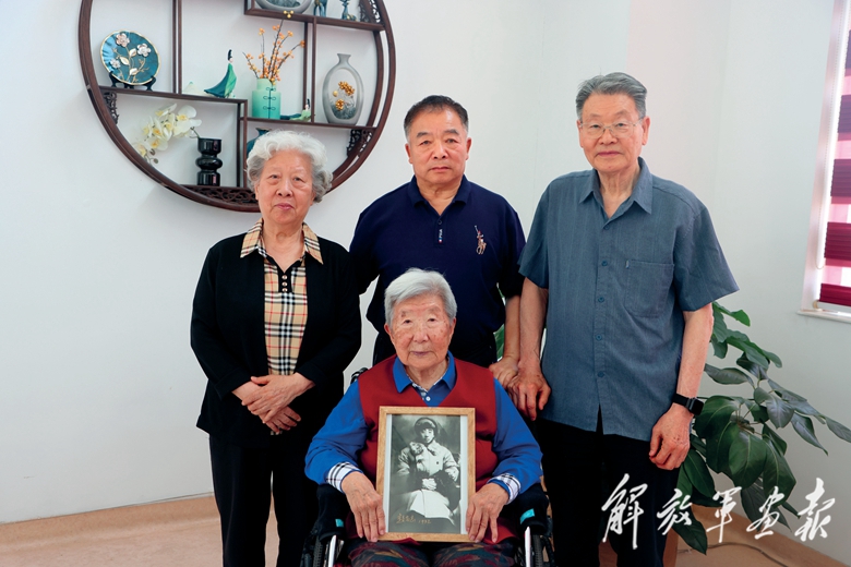 赵尚志将军生前戎装照发现者姜宝才(后排中)与赵尚志的家人合影。前排持照片者为赵尚志的侄女赵元明。
