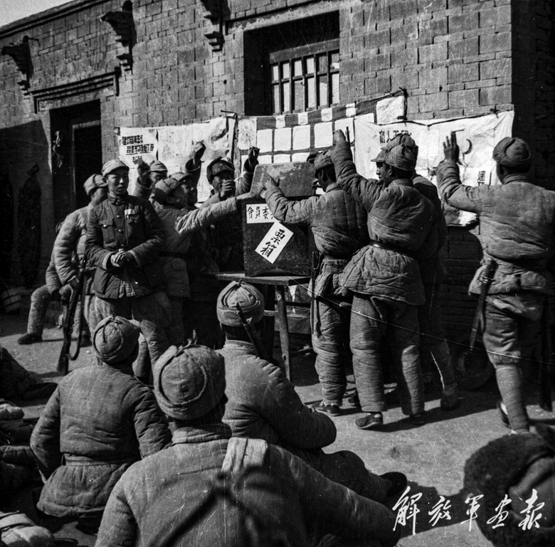 1948年前后,晋察冀部队某部五连民主选举士兵委员会。