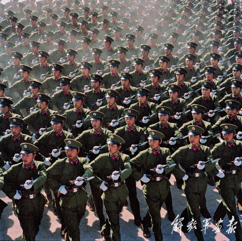 1984年国庆阅兵,步兵徒步方队通过天安门广场。