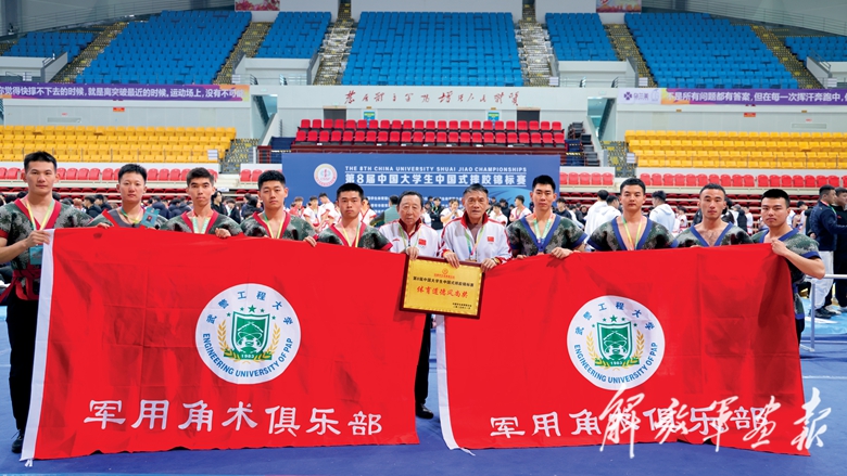 陆军兵种大学代表队由军用角术俱乐部的5名学员组成,他们在赛场上全力以赴、敢打敢拼,最终收获1枚金牌和2枚铜牌,在甲组团体总分中排名第八。在男子甲组70公斤级的较量中,许恩阳连续战胜上届比赛的冠亚军选手,获得冠军。