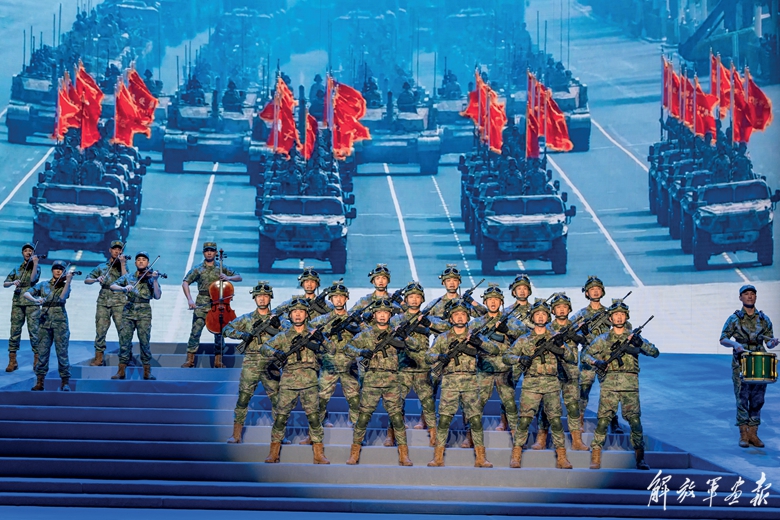 这场充盈着简约朴素之美、阳刚雄浑之气、深邃隽永之思的演出,以充满战斗气息的艺术语汇,将历史回响、时代强音与未来召唤汇成交响,向建立、保卫、建设新中国,为国防和军队建设作出卓越贡献的老前辈们,致以崇高敬意和诚挚祝福。