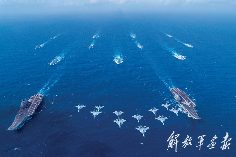 《辽宁舰、山东舰编队首次开展双航母编队演练》