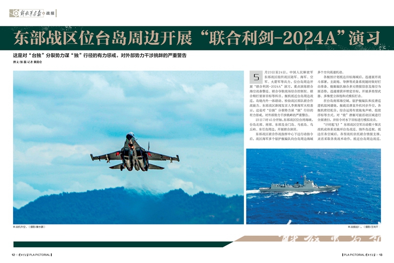 重大主题宣传奖一等奖:《东部战区位台岛周边开展“联合利剑-2024A”演习》(刊于2024年第6期)
