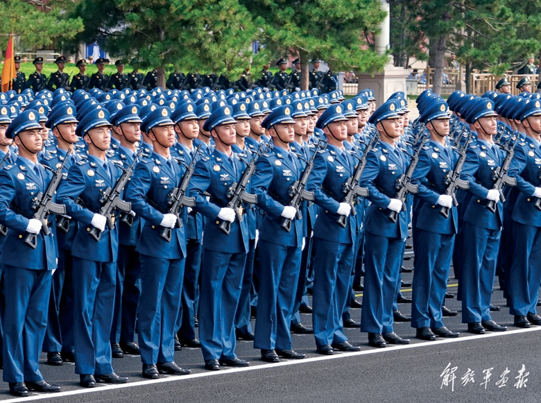 “敬礼——”受阅部队威武雄壮、意气风发,以忠实履行使命、捍卫和平正义的豪迈气概接受统帅检阅。