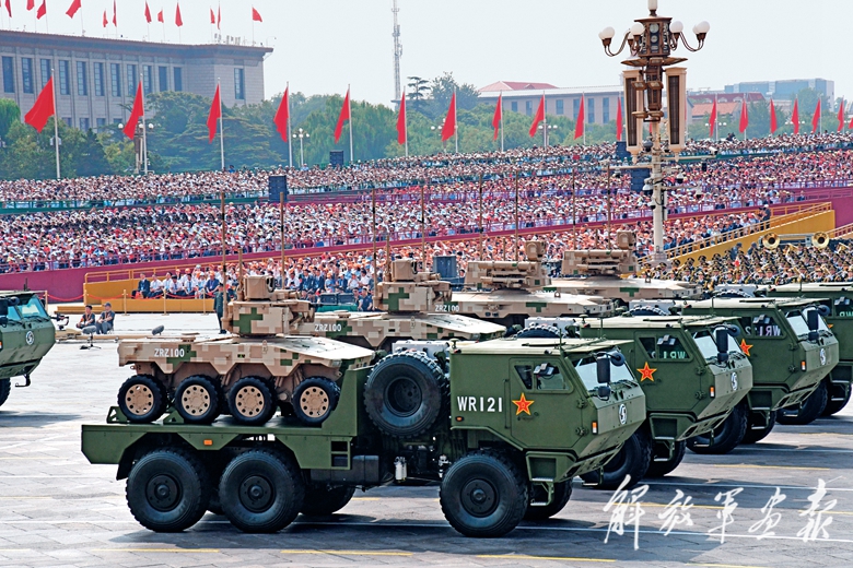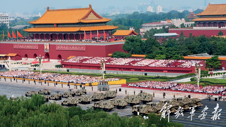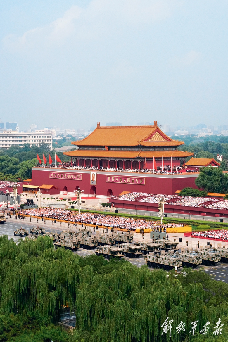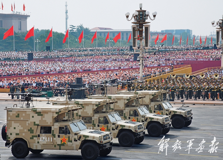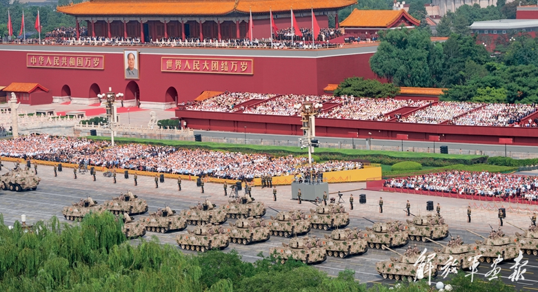 新型坦克、无人智能、网电作战、高超声速、防空反导、战略导弹……从抗战时期土枪土炮到今天新型作战力量,国产现役主战装备和战略重器在天安门城楼前光荣接受检阅,展示坚决捍卫国家主权安全发展利益、坚定维护世界和平的钢铁意志和强大实力。