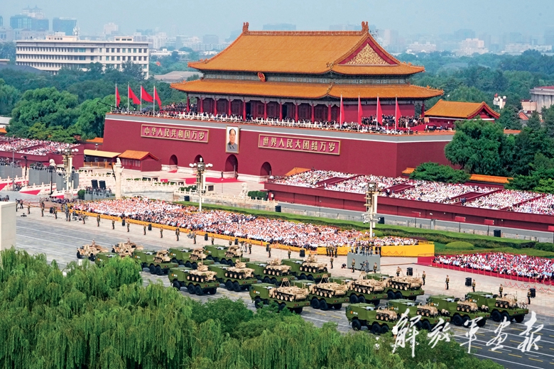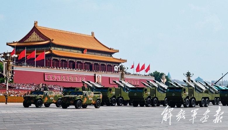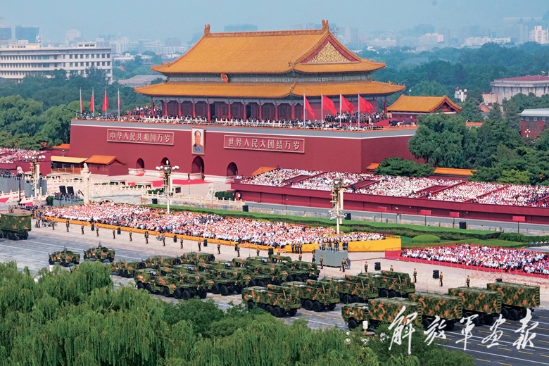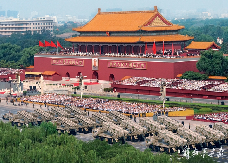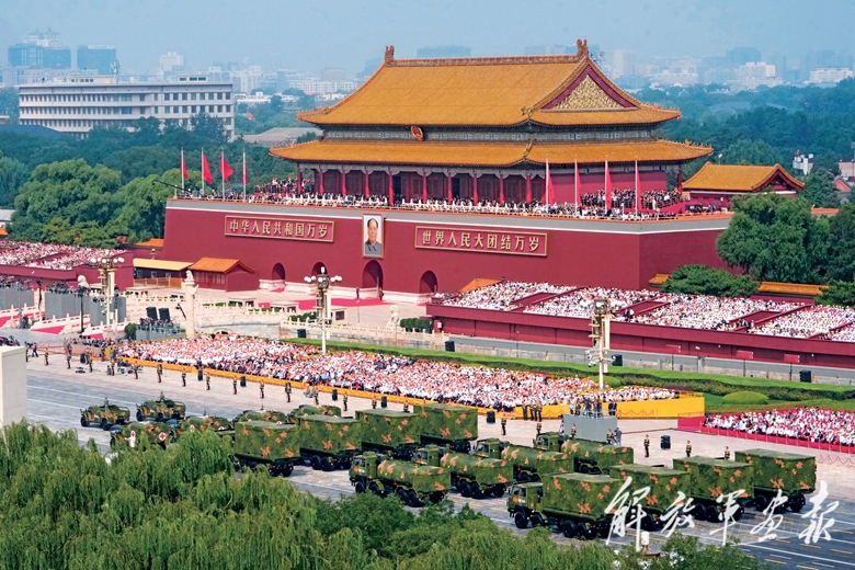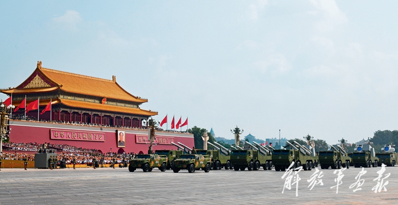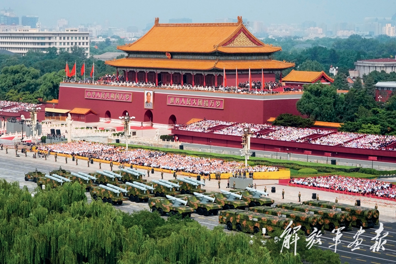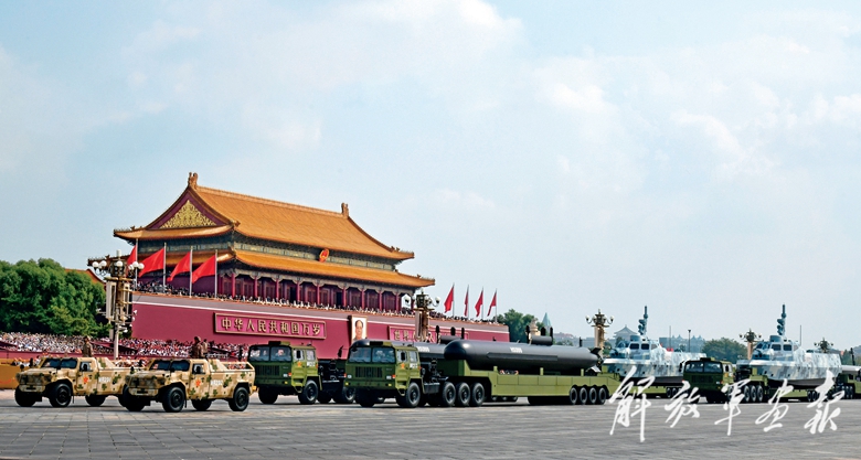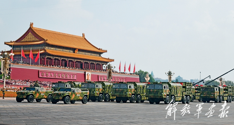 国产现役主战装备和战略重器在天安门城楼前通过,展示坚决捍卫国家主权安全发展利益、坚定维护世界和平的钢铁意志和强大力量。
