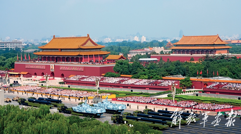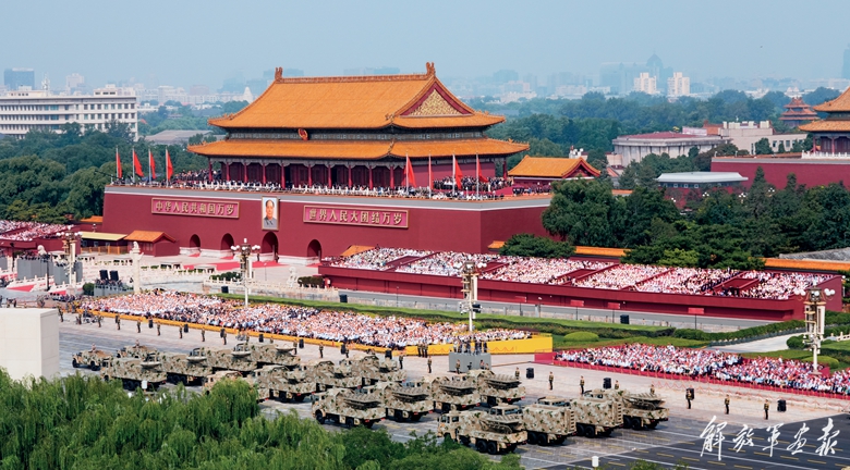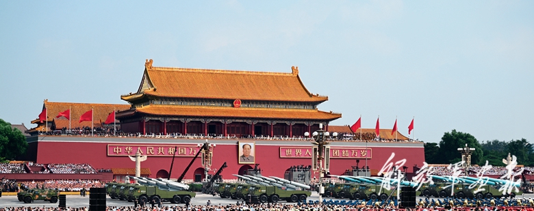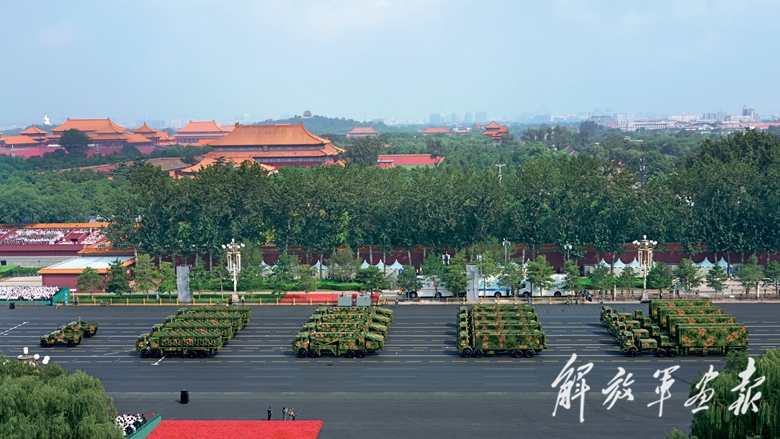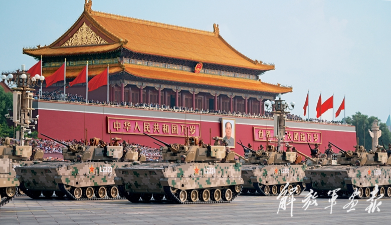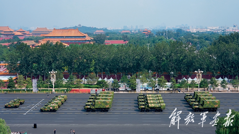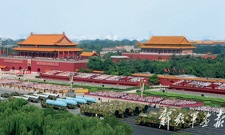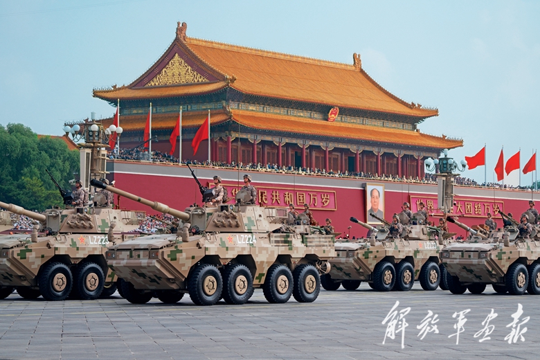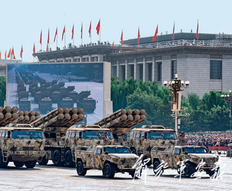 国产现役主战装备和战略重器在天安门城楼前通过,展示坚决捍卫国家主权安全发展利益、坚定维护世界和平的钢铁意志和强大力量。