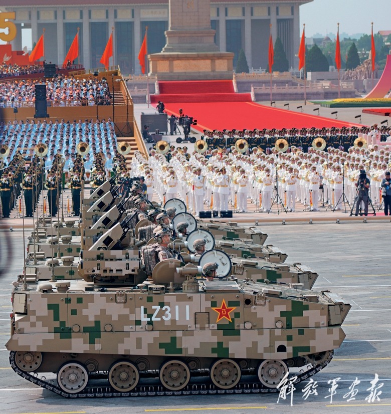 以新型履带系列空降战车编成的空降突击方队,以威武的阵势亮相阅兵场,向世界展示中国空降兵新型空降装备体系建设取得的新成就。