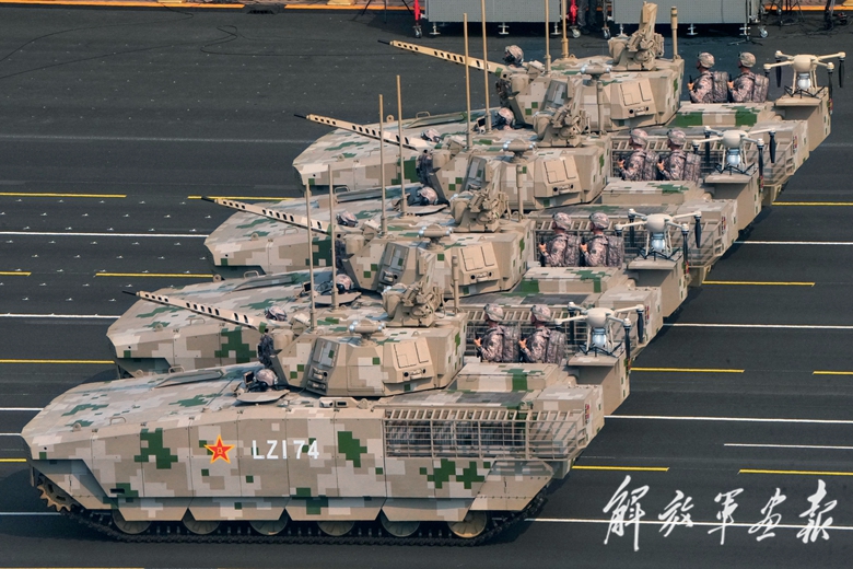 作为陆军地面突击力量的新一代装甲装备,受阅的99B坦克、100坦克、100支援战车,尽显机动夺要、攻坚突破的强大战力,是我军高技术装备体系的重要组成部分。